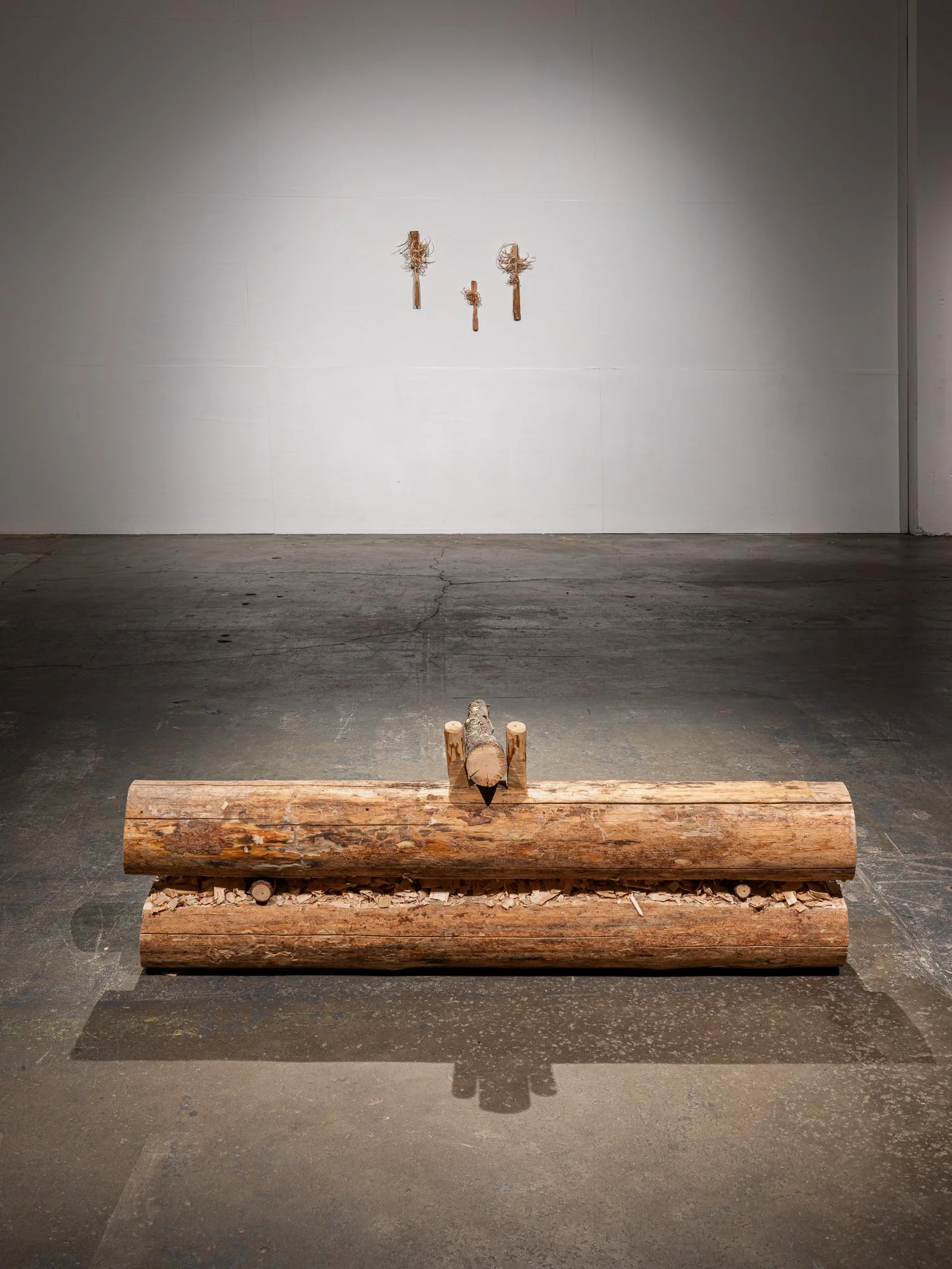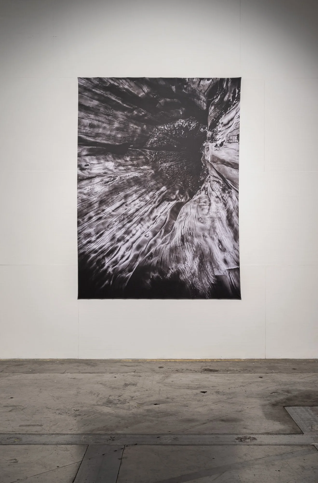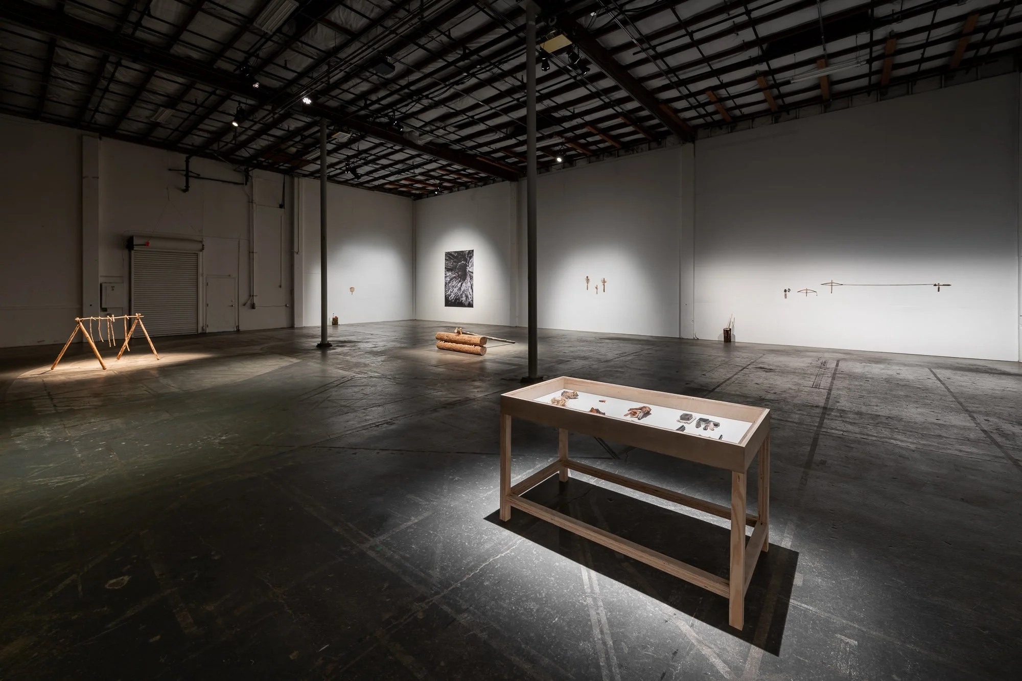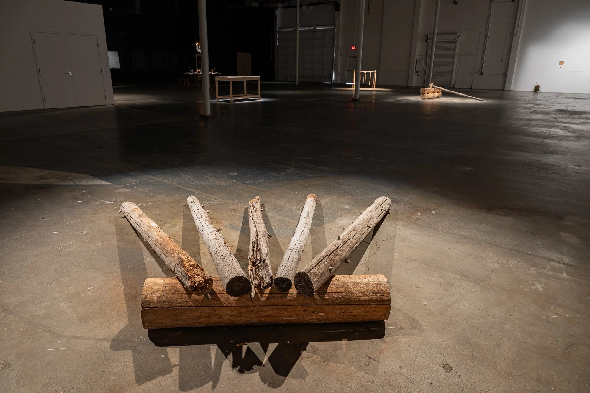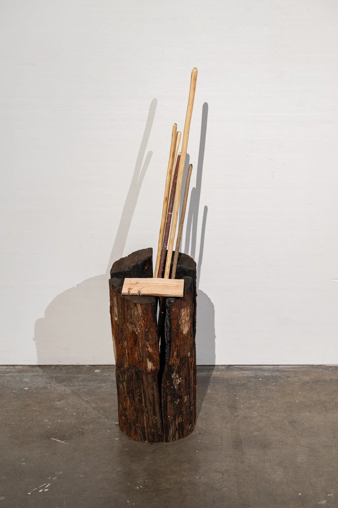 Through a decolonial lens, Who by Fire returns to fire as one of the most fundamental elements for human survival. The exhibition takes as its starting point the near total estrangement between people and fire in the 21st century, which is closely tied to a broad-scale contemporary disconnection from the natural world. This phenomenon is itself an enduring effect of colonialism and white supremacy in the United States, as Black and Indigenous peoples’ connections to the land have been systematically erased for generations. Using only the most basic tools, Barrett goes deep into the American landscape to engage with fire in a decolonial project of making and maintaining, thinking ahead and looking back for ancestral guidance.