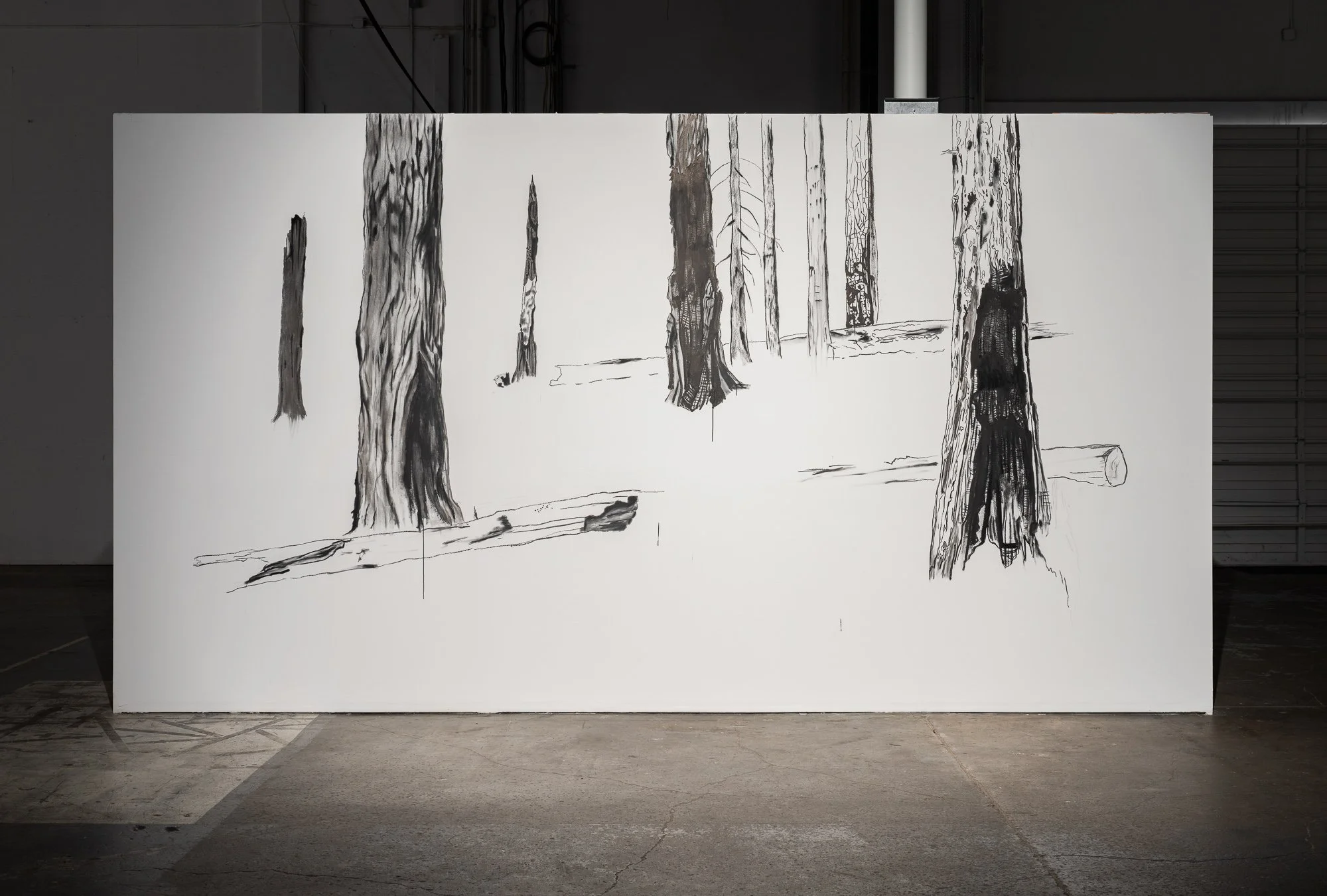 charcoal and sumi ink wall drawing, 18 x 9 feet