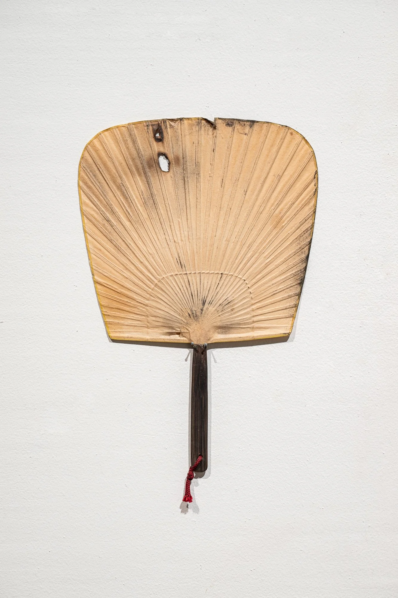 found Japanese Yakitori fan, paper, wood, 14.5 x 9.5 inches